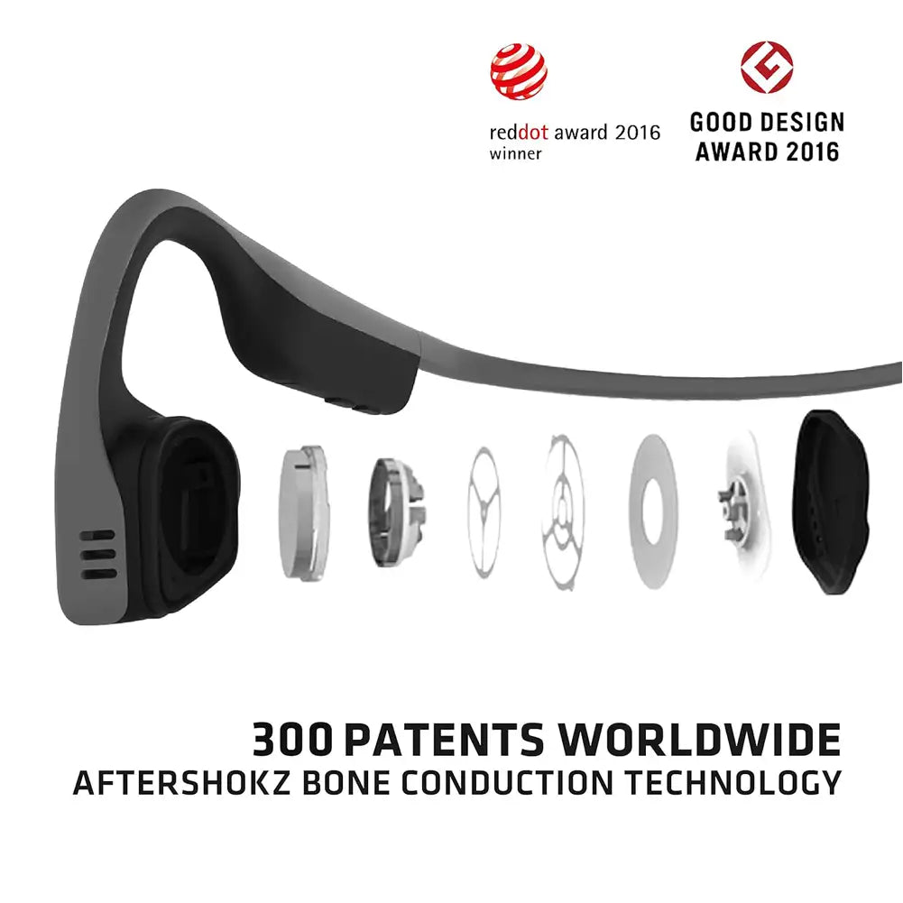 Open-Ear Design. Bone conduction technology leaves ears open to ambient sounds while delivering premium audio. Sweatproof.Inspired by athletes, an IP55 rating repels sweat, dust, and moisture. Multifunction Button. Easy controls to play, pause, skip, activate voice assistant, and answer calls. 6-Hour Battery. Enjoy audio and dual noise-canceling mics for crystal-clear calls. BONE CONDUCTION TECHNOLOGY Our bone conduction technology and OpenFit design deliver music through your cheekbones ensuring your ears remain completely open to ambient sounds for maximum situational awareness during long-term wear BLUETOOTH CONNECTIVITY Modern wireless headphones with Bluetooth v4 1 connectivity and convenient multipoint pairing compatible with your iOS and Android Bluetooth-ready smartphones or tablets and Mac and PC computers and laptops DESIGNED FOR LONG WEAR Titanium wraparound headbands are lightweight and flexible to ensure maximum comfort during extended wear Combined with a long battery life this compact slim fit allows you to enjoy continuous music and calls for six hours at a time QUALITY SOUND Innovative AfterShokz headphones deliver a premium audio experience With PremiumPitch technology that delivers a wide dynamic range and rich bass and LeakSlayer technology to significantly reduce natural sound leakage you are ensured the best on-the-go audio ULTIMATE DURABILITY Our IP55 certified sport headphones repel sweat dust and moisture throughout your indoor or outdoor exercise routine These sturdy workout headphones withstand your most strenuous running cycling and more! EQ presets reduce vibration