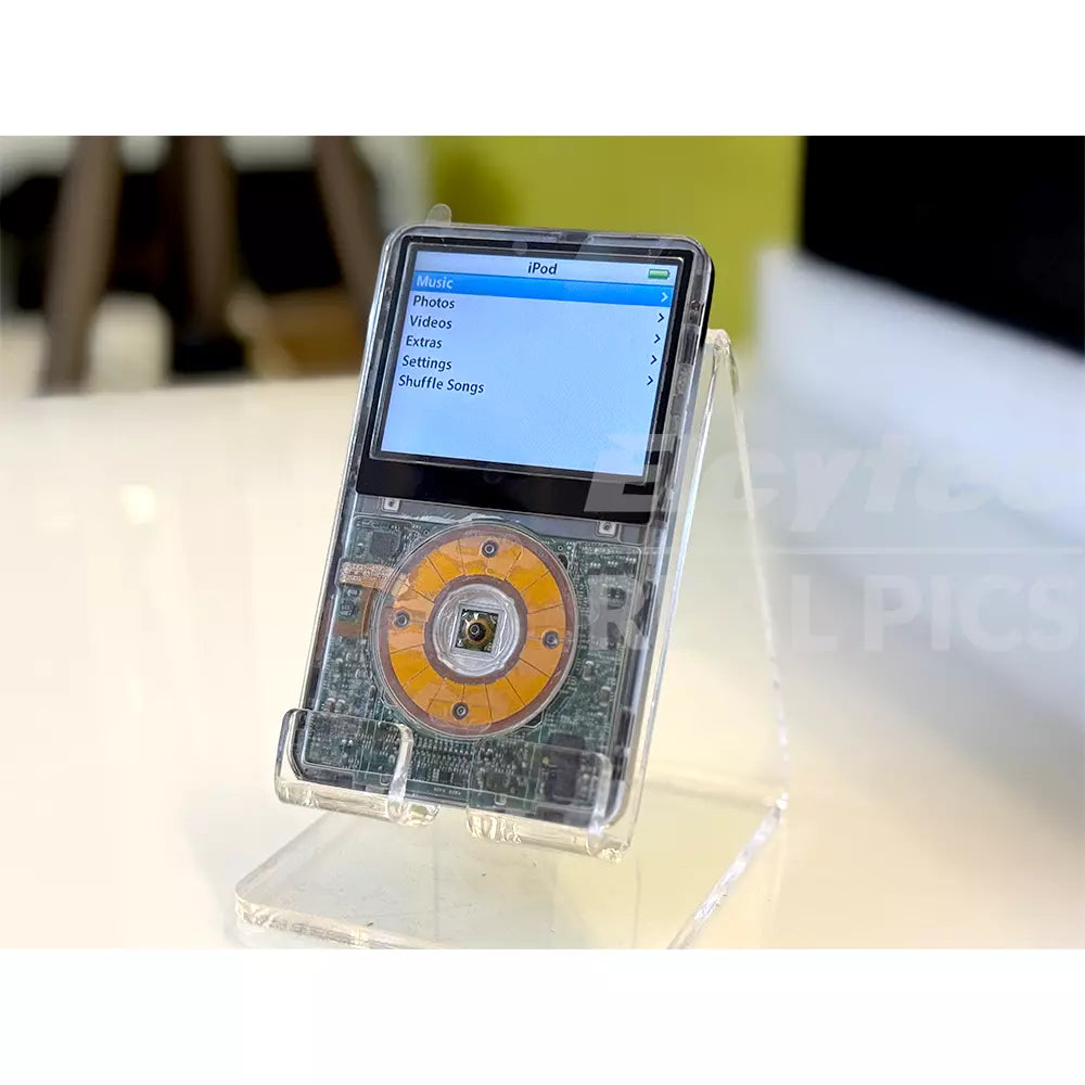 This custom Apple iPod Classic 5.5 edition reimagines one of Apple’s most beloved music players with a modern upgrade and a striking translucent finish. Built from the legendary 5.5-generation iPod—renowned for its Wolfson DAC audio quality—this version combines classic analog warmth with contemporary storage power. Featuring a 256 GB flash upgrade, it offers faster performance, improved battery efficiency, and silent operation. The translucent shell reveals the intricate internals beneath, making it both a nostalgic masterpiece and a collector’s showpiece. Every unit is hand-customized with care, delivering the timeless iPod experience in a design that feels both vintage and futuristic.