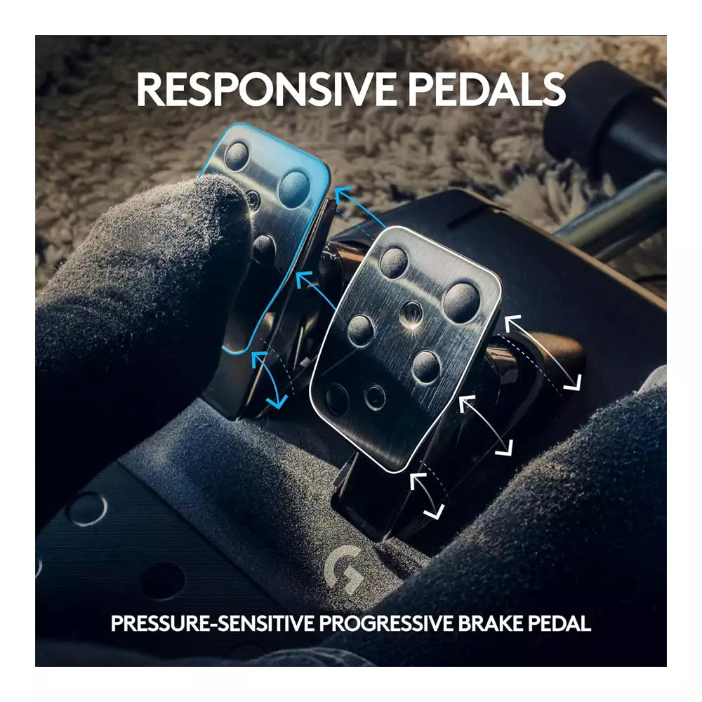 - Package includes: Logitech G923 racing wheel, Pedal set, Connection Cable, USB Cable, Power Adapter, Documentation and Box.