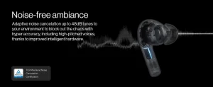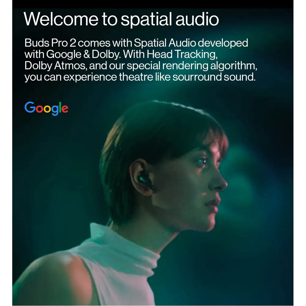 Welcome to spatial audio Dynamic, layered surround sound is no longer limited to the cinema —Buds Pro 2 comes with Spatial Audio developed with Google and Dolby for the new OnePlus 11. With Dolby Head Tracking, Dolby Atmos, and our special rendering algorithm, you get a wider field of clear, natural sound and pristine vocals for a listening experience that sounds like a front-row seat at a live show. Relax to your favorite tracks Put on your OnePlus Buds Pro 2 and use spatial audio to listen to beautiful versions of your favorite songs on YouTube and Disney+. Adaptive silence Never get tripped up by noisy environments, with three smart noise cancelation modes that seamlessly adapt to your needs — Faint, Smart, and Extreme. And when you want to let in the outside world, our updated Transparency mode allows for clearer conversations and better safety and awareness. Noise-free ambiance Take a deep breath and relax with adaptive noise cancelation up to 48dB3 that tunes to your environment to block out the chaos with hyper accuracy, including high-pitched voices, thanks to improved intelligent hardware. Start the ear scan with a few quick taps, and you’ll be chilling to your favorite playlist in no time.