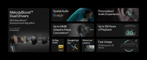 Melody made bolderOur MelodyBoost™ Dual Drivers were co-created with Dynaudio to deliver a premium listening experience tailormade for audiophiles, featuring crisp vocals and deeper, dynamic bass. The large 11mm + 6mm design utilizes liquid crystal polymer diaphragms with separate edges and domes for enhanced balance and tone that will be music to your ears.