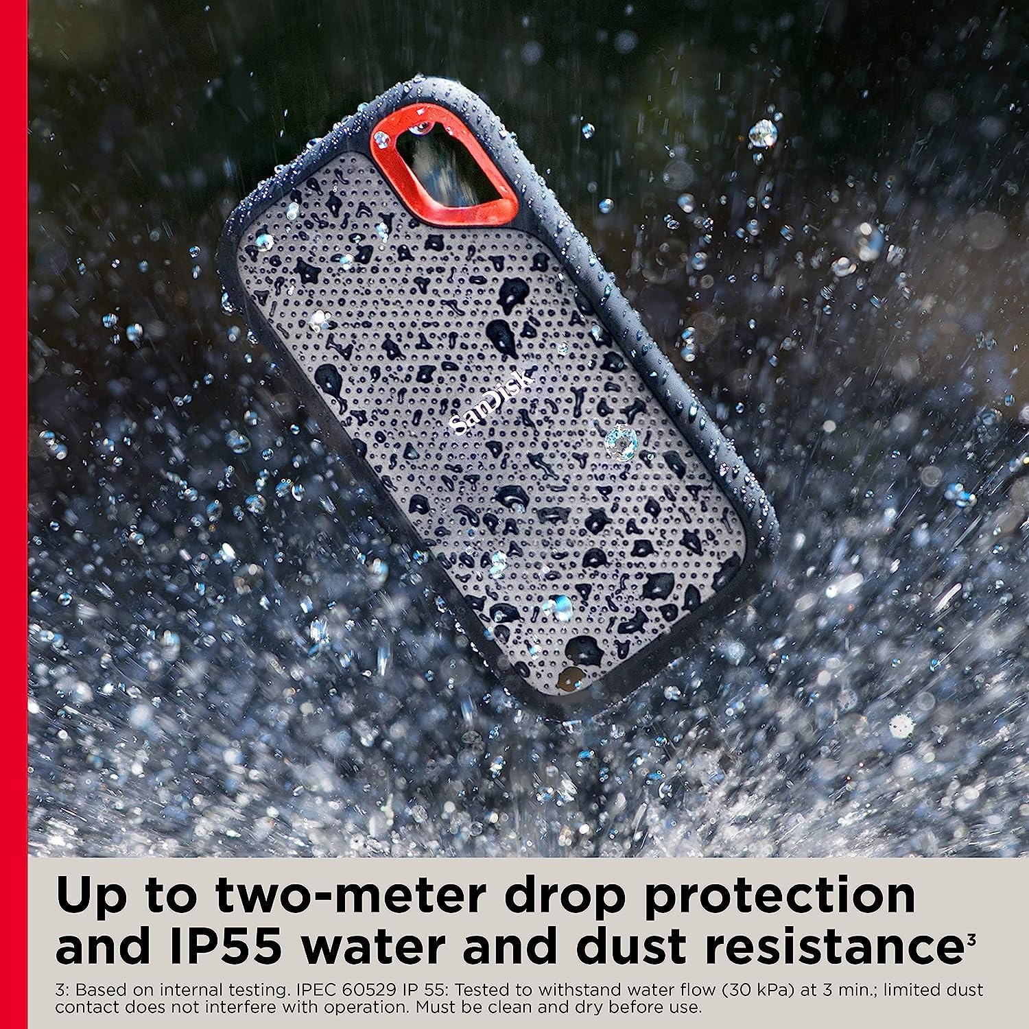 (Open Box) Sandisk Extreme Portable 2TB, 1050MB/s R, 1000MB/s W, 3 Meter Drop Protection, IP65 Water/dust Resistance (2TB) (4 Years Warranty)
