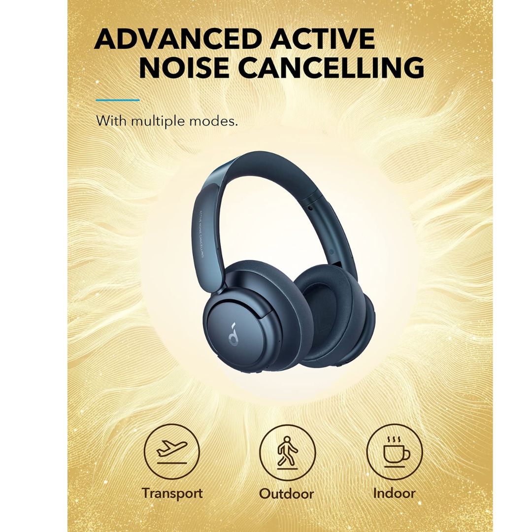 (Open Box) Soundcore By Anker Life Q35 Bluetooth Wireless On Ear Headphones With Targeted Active Noise Cancellation,Mic (Blue, Biege) (6 Months Warranty)