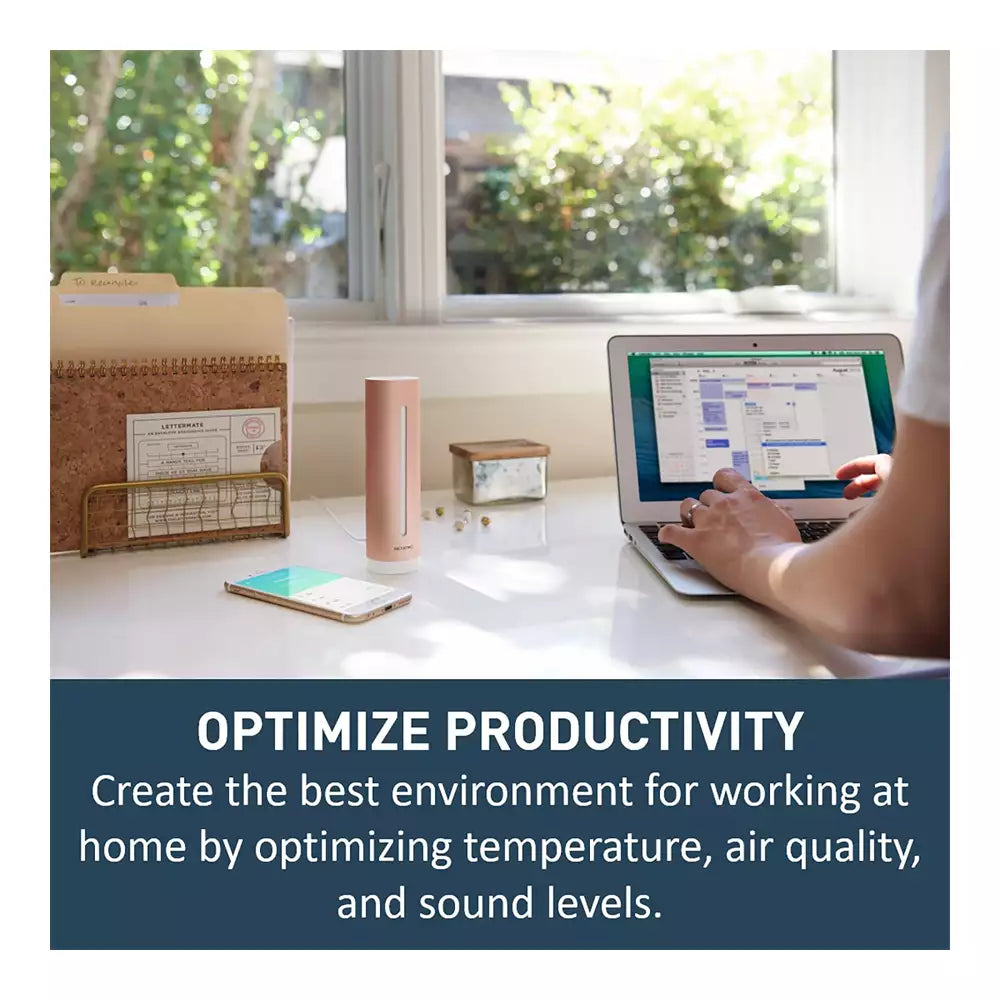 Access information about your home environment on your smartphone in real time Your Smart Indoor Air Quality Monitor sends you all the information you need to know about your home environment directly to your smartphone. View your data history to track the evolution of the different parameters and receive alerts when your home environment changes. Monitor your home’s air quality and create a healthy environment A healthy environment helps you to feel good. An unregulated home environment can lead to headaches, fatigue, allergies and asthma. Make sure you live in a healthy home by tracking key data. Improve your sleep A healthy bedroom is essential for good-quality sleep. Monitor the temperature, air quality and sound levels: consult the history of these parameters to improve your sleep. Main features: 4 precise sensors Air quality, humidity, temperature and noise, on your smartphone in real time. Your data history Access your measurements history and analyse the impact of your actions on your environment. Alerts in real time Receive real-time alerts whenever there are changes in your environment. Tailored advice 3 profiles in App: baby, person with asthma, general.