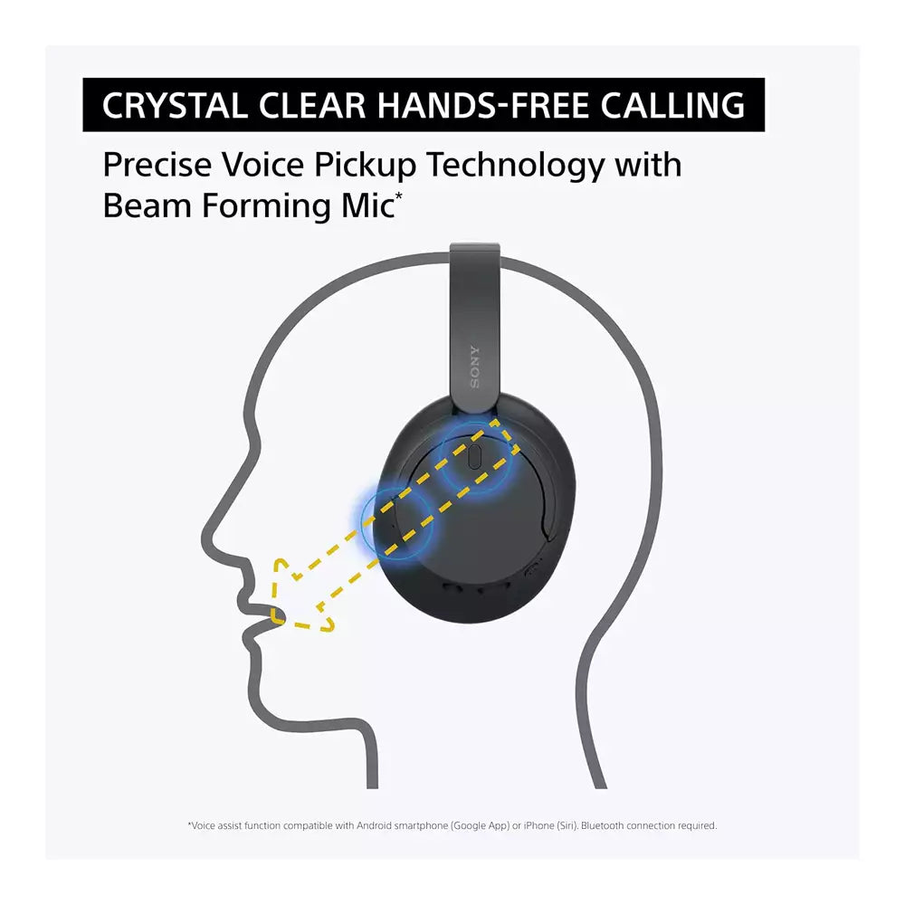 Enjoy all-day comfort without the noise Noise canceling to the next level Dual Noise Sensor Technology and an Integrated Processor V1 takes noise canceling to the next level. Now you can fully immerse yourself in the music. Comfortable, lightweight design The WH-CH720 is Sony’s lightest wireless noise-canceling headphones yet. Featuring a slimmer, more lightweight headband, these headphones have been re-structured to create more space and comfort for the ears. Making them the ideal headphones to work from home or watch your favorite movie. Adjustable Ambient Sound mode Adjustable Ambient Sound mode offers 20 level settings. Listen to your music with incredible sound quality while still hearing sounds like traffic noise, café conversations, and transport announcements. The “Focus on Voice” chat allows you to chat freely without removing your headphones. Multipoint connection For total convenience, these Bluetooth headphones can be paired with two Bluetooth devices at the same time. You’ll be able to quickly switch your headphones to either of the two devices at the touch of a button, making the CH720N the ideal work from home headphones Clear hands-free calling Precise Voice Pickup Technology uses beamforming microphones to allow the headphones to pick up voices clearly and accurately for hands-free calls. Voice assisitant Just say “OK Google” or “Alexa” to activate your preferred voice assistant. Adaptive Sound Control Automatically optimizes volume based on your environment learning your behavior and recognizes locations that you frequently visit. Digital Sound Enhancement Boost the quality of compressed music files and enjoy streaming music with high quality sound through DSEE.